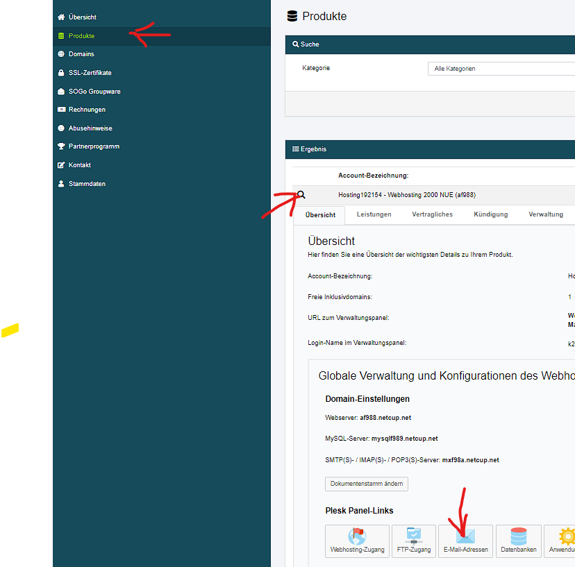 User und Passwort stehen in Bitwarden - Organistation - Netcup - "Netcup Hauptzugang" - Adressbearbeitung öffnen