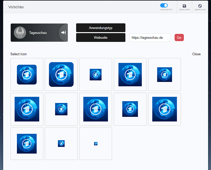 Durch einen klick auf "Go" werden Icons vorgeschlagen