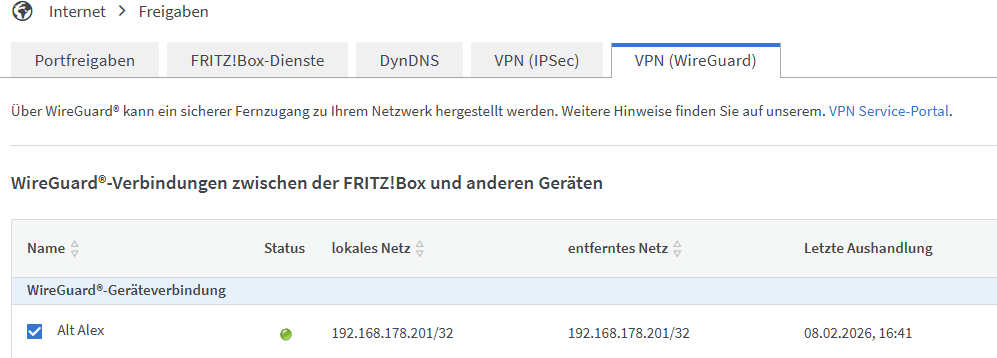 Die Zugangsdaten sind erstellt und übergeben. Auf folgenden PC ist die Tunnel-Möglichkeit eingerichtet: