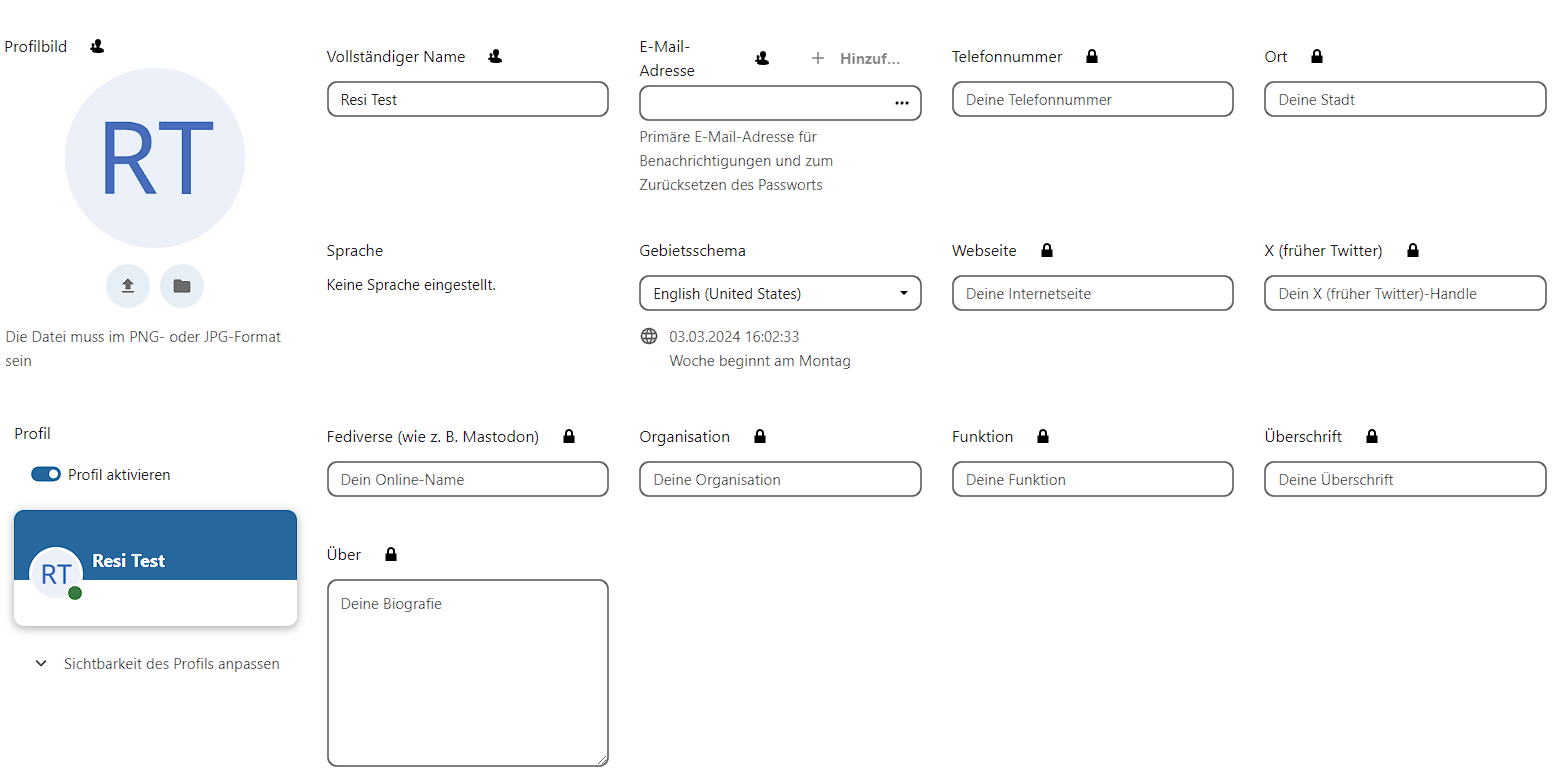 - Profilbild festlegen