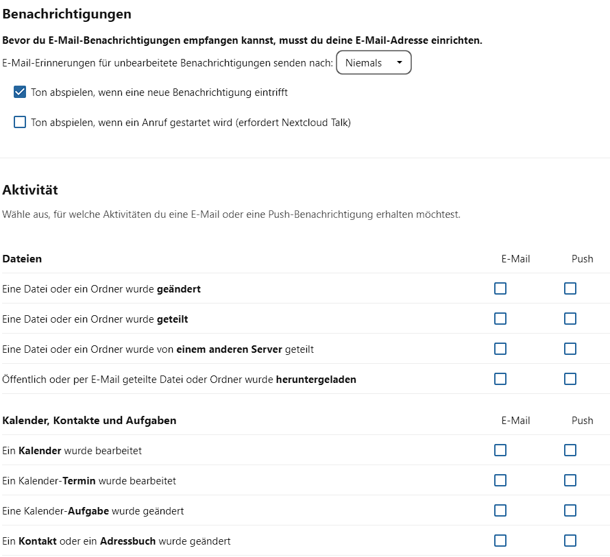 E-Mail = E-Mail, Push = App, Web