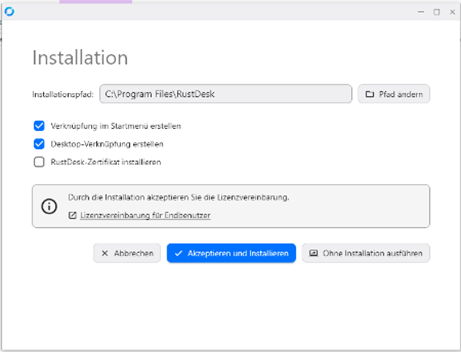 Ein Update wird genauso ausgeführt. RustDesk aktualisiert sich nicht automatisch.