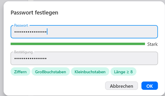 Bitte das Passwort eingeben und bestätigen, welches durch Jörg Kirschner mitgeteilt wird.