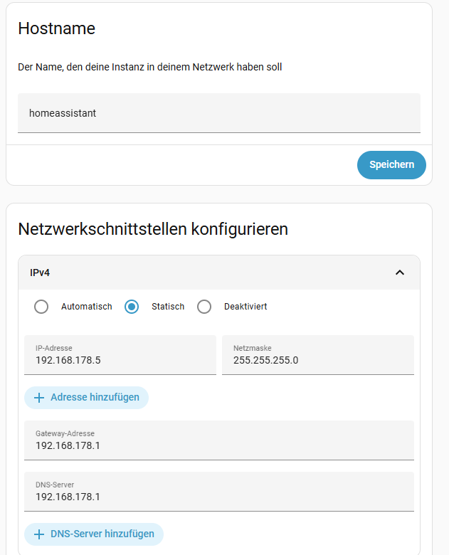 Der HomeAssistent wurde mit einem Helper-Script angelegt. Siehe Kapitel Server, HAOS.